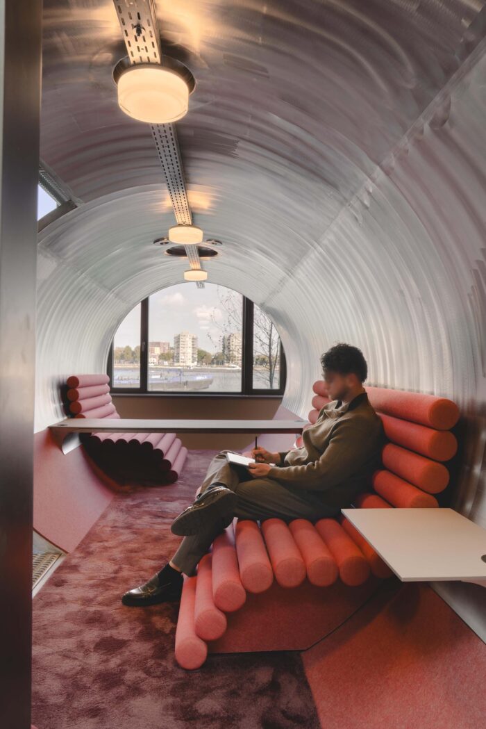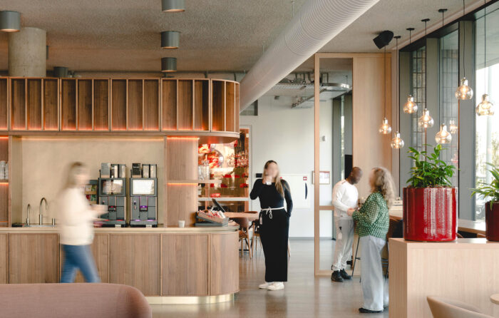 De afgelopen jaren werkten we, samen met een integraal team, aan deze bijzondere opgave: de transformatie van een vergeten werkplaats in de Rotterdamse haven tot een bruisende hub waar werken, leren en ontmoeten samenkomen. Een superdiverse opdracht waarin we aanvoerder waren van een multidisciplinair ontwerpteam, een grootschalig interieur ontwierpen en een karaktervol gebouw nieuw leven gaven. Met groot plezier werkten we samen met Pieter den Hartogh, Mark Warner en Ewald de Bruin, en leerden we van elkaars ambitie en visie. Over een project van deze omvang valt nog veel te vertellen – daarover binnenkort meer. Maar voor nu: een eerste blik op de resultaten van dit sterk staaltje teamwork, en een proost op Den Hartogh Basecamp!