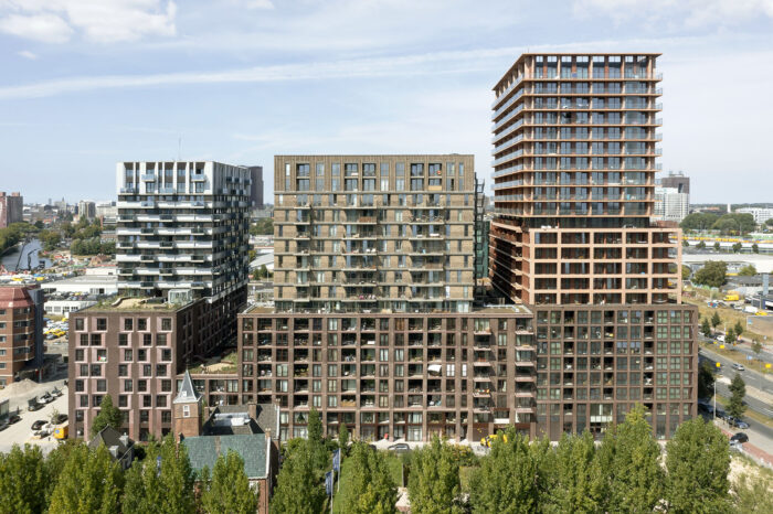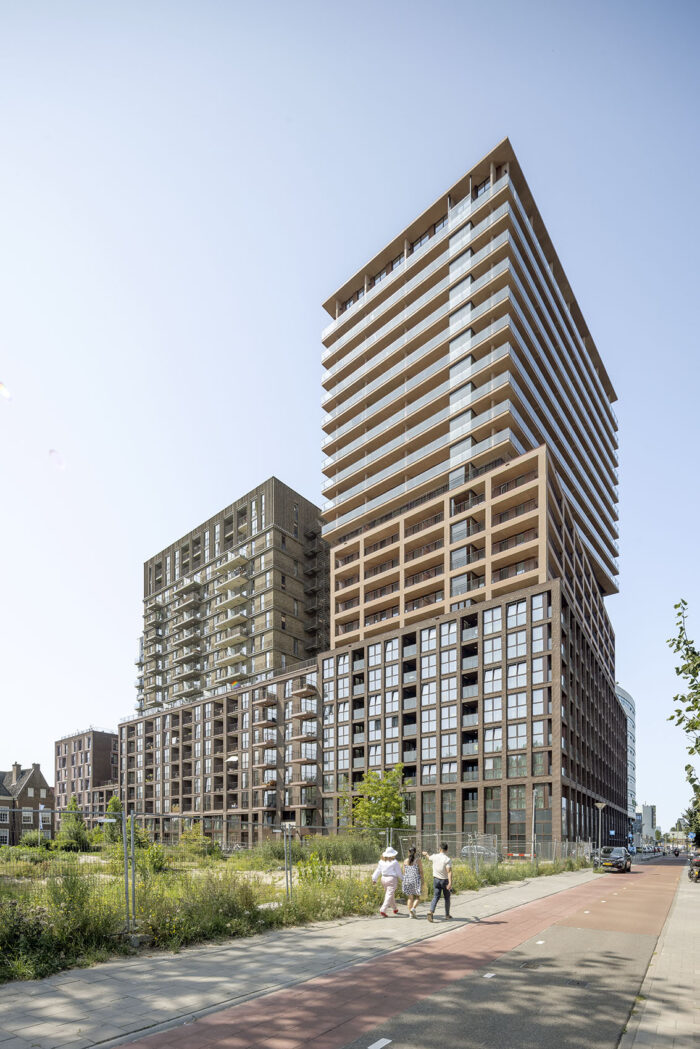 De schaal van Binck City Park is indrukwekkend: vier bouwblokken, bijna 900 woningen, commerciële ruimtes, groene daken en collectieve voorzieningen. Het blok is als geheel ontworpen door 3 architectenbureaus. Het resultaat is een gestapelde compositie van architectuur; elk met een eigen karakter, maar geworteld in een gedeelde identiteit. Met een hoogte van 75 meter is het blok een baken in de wijk, maar de gelaagde opbouw en architectonische expressie voorkomt dat het massief of afstandelijk aanvoelt. De 8-meter hoge plint maakt actief verbinding met de straat, terwijl terugliggende verdiepingen een verfijnde en open uitstraling geven.
