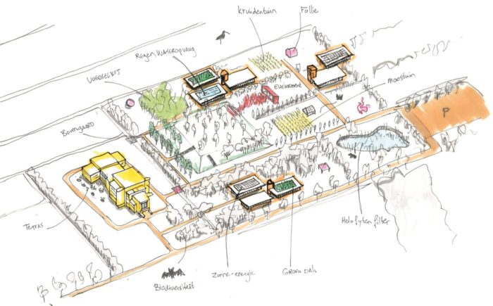 De ambitie is hoog: nieuwe gebouwen die regeneratief, toekomstbestendig en flexibel in gebruik zijn. Met een houten skelet en zorgvuldig gekozen materialen dragen ze actief bij aan CO₂-opslag en circulair bouwen. De participatio’s liggen als dorpjes in de polder en vormen innige clusters van innovatie hubs. Zo ontstaat hier een innovatief landschap met scale-ups, ambachten, living labs, expo’s en experimenten die de mens centraal stellen. Daarmee krijgt de filosofie van het landgoed concrete vorm: vernieuwen door duurzaam te werken, op alle schaalniveaus.